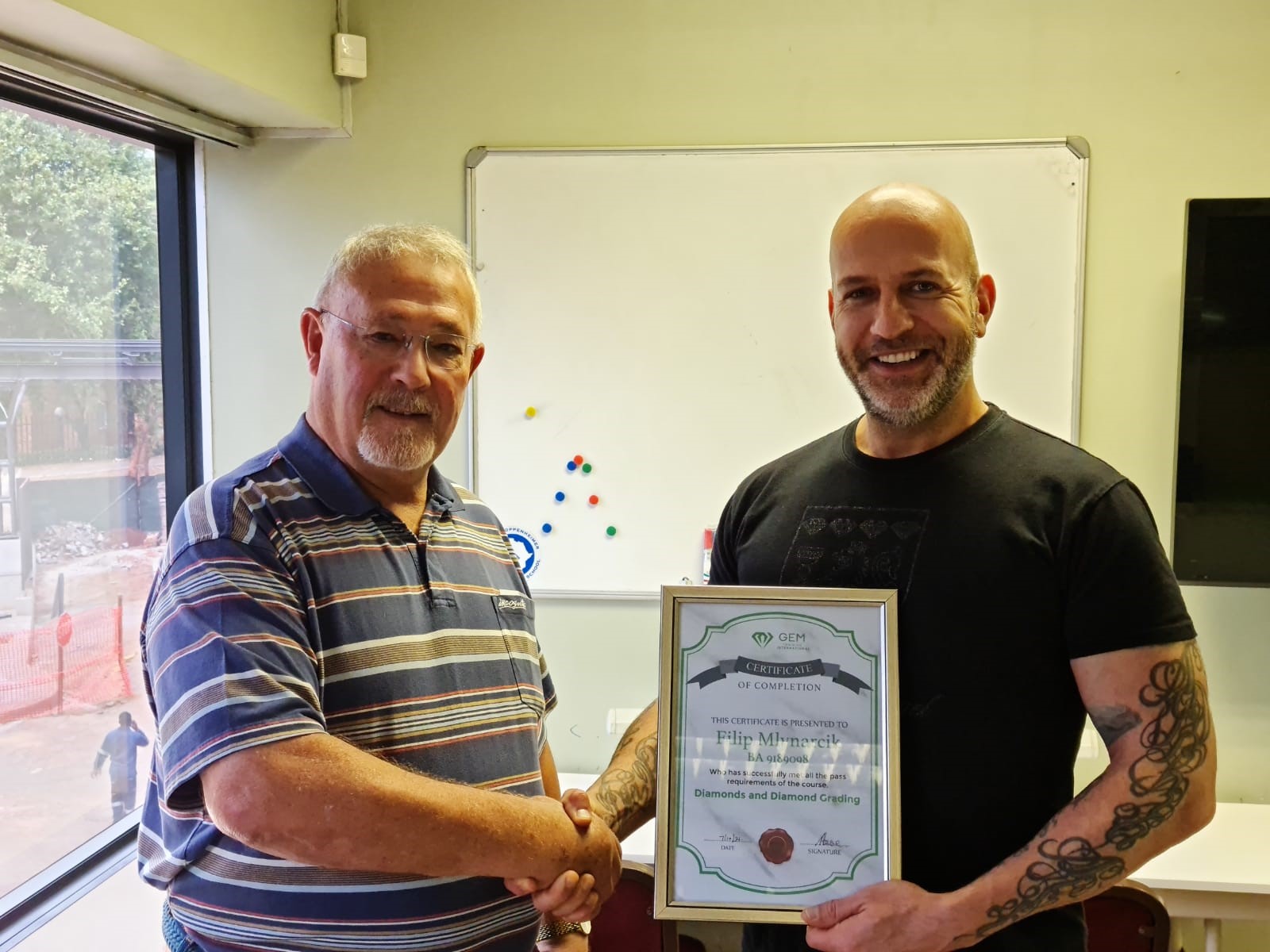 Congratulations Filip on successfully completing the Diamond and Diamond Grading course, with exceptionally high marks. Filip is a qualified jeweller, polishes gemstones and